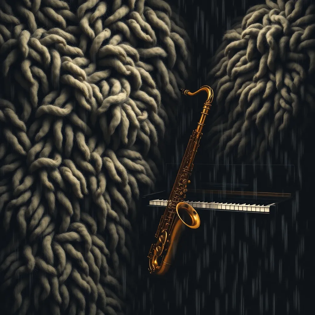 Dark jazz noir, saxophone, muted drums, piano, 808 bass, reverb, cello outro