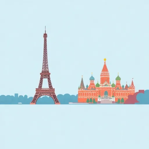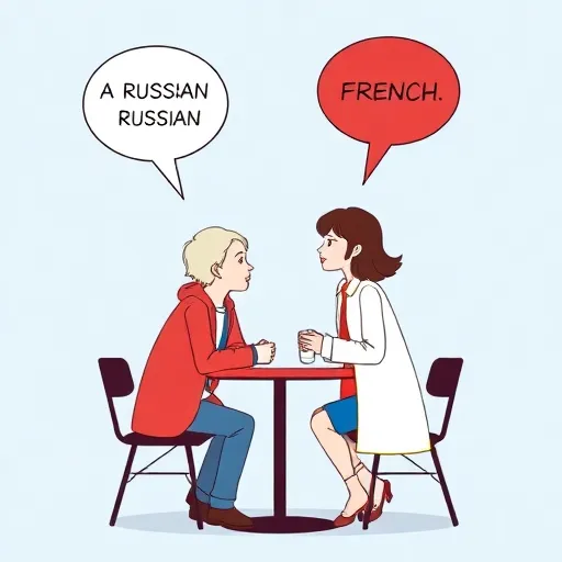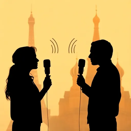 Spoken word duet, minimal percussion, alternating Russian/French voices, 60-80 BPM