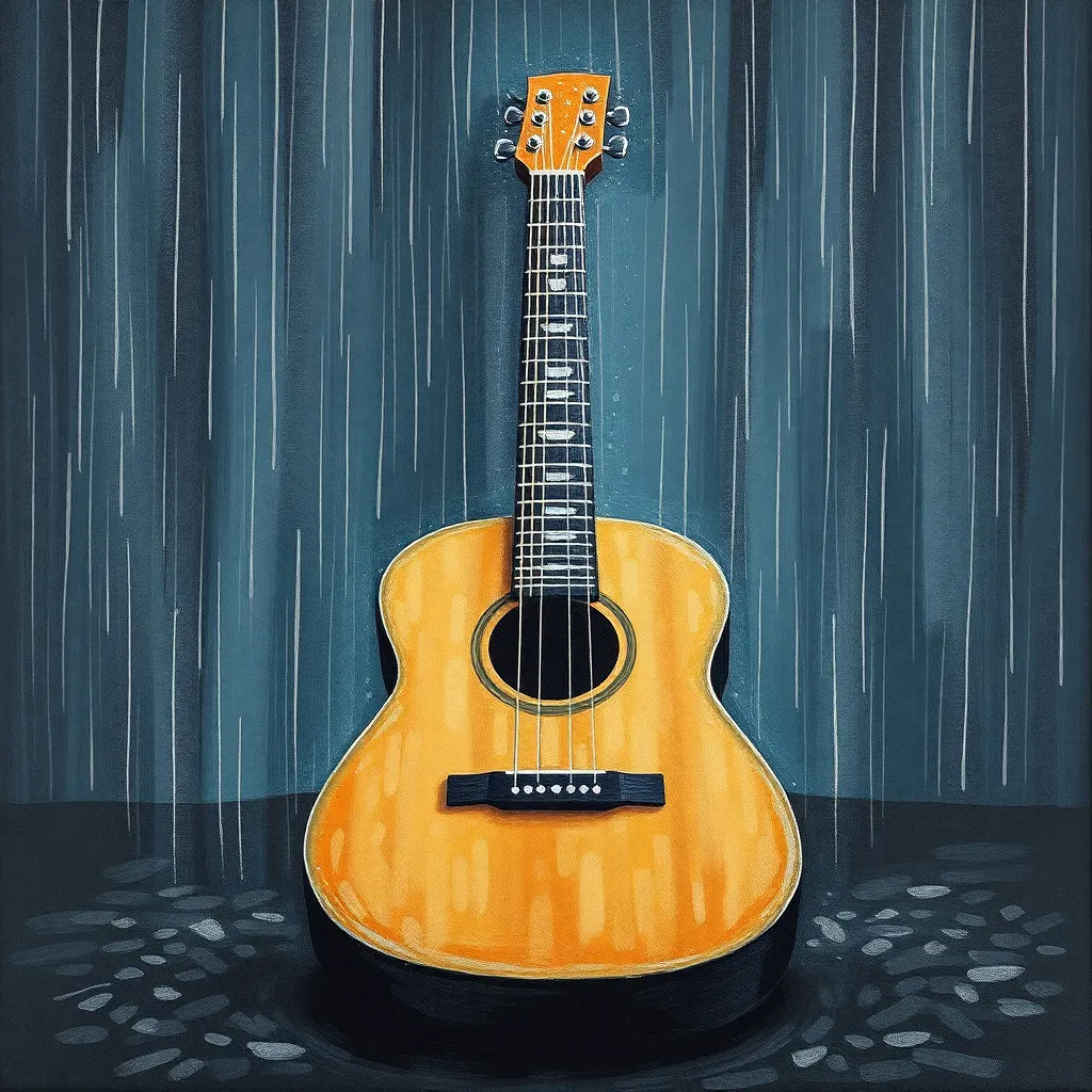 early 2000s Russian urban song, female vocal, acoustic-driven; female alto, conversational delivery, breathy but clear, dry close-mic, no autotune; acoustic guitar, fingerpicked arpeggios in A minor, gentle strums on emphasis; light shaker or brushed... |