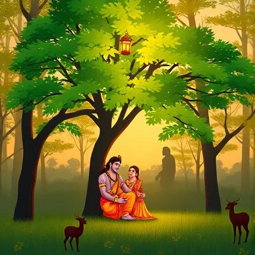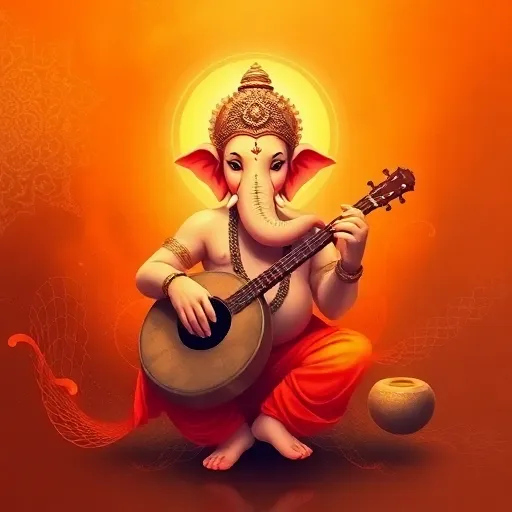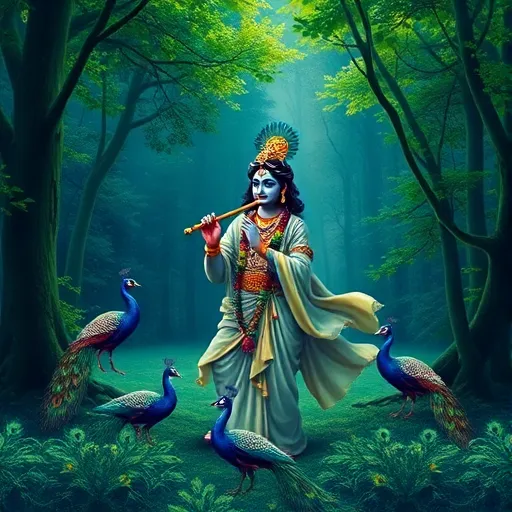 Bansuri flute, tabla rhythm, sitar strings, devotional melody, spiritual atmosphere, fading outro. |