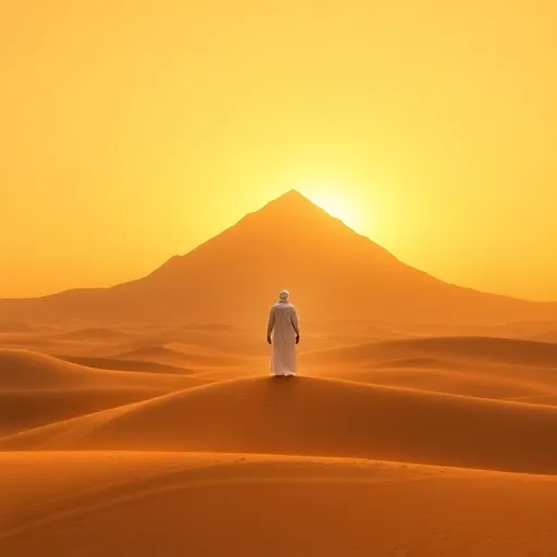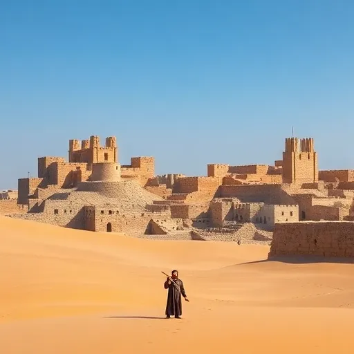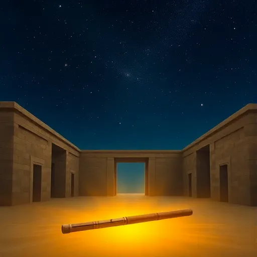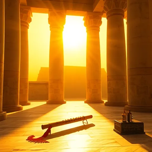 Ney flute, oud strings, darbuka rhythm, ancient atmosphere, fading outro. |