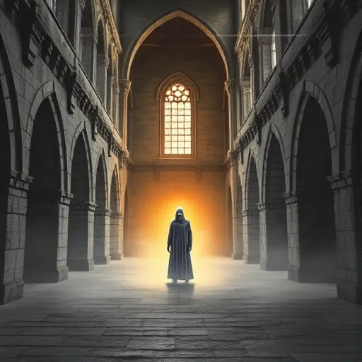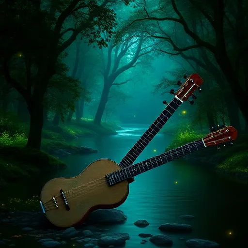 Latin guitar, marimba melody, soft percussion, haunting choir, mysterious atmosphere, fading outro. |