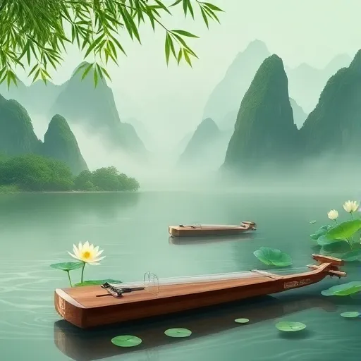 Classical Chinese, traditional instruments, meditative orchestral with guzheng focus |