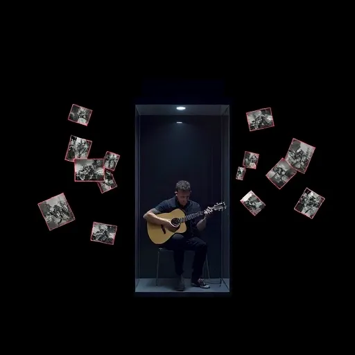 Russian post-punk rock, melancholic acoustic guitar, cold synths, lo-fi drums |